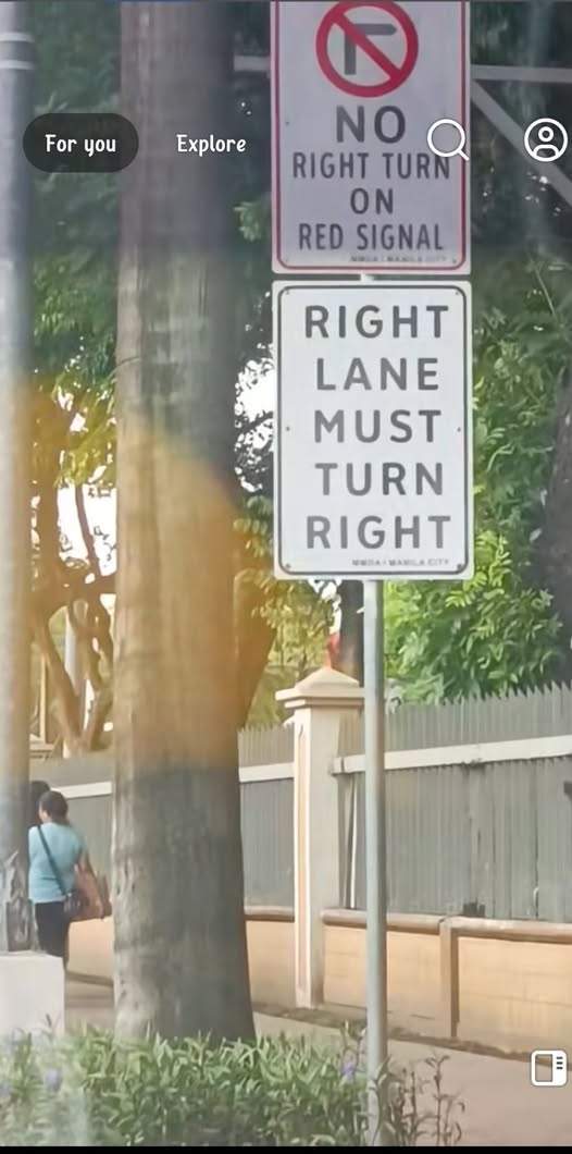 Isa na namang Funny traffic sign Tagalog version ang viral ngayon — at ito ay nakakabaliw sa kalituhan! Sa isang intersection sa Manila, makikita mo ang dalawang magkasunod na traffic signs. Yung isa: “Right lane must turn right,” pero sa taas nito, “No right turn on red signal.” Ano ba talaga, kuya?